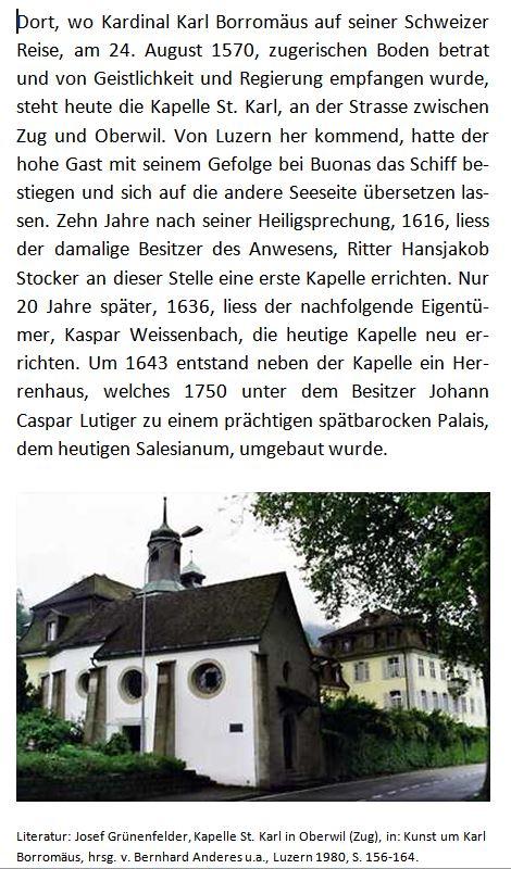 Das ist an der Strasse zwischen Zug und Oberwil, und gemeint ist die Kapelle St. Karl neben dem Salesianum.